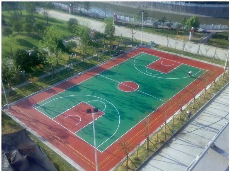 2、耐候-丙烯酸篮球场材料适用于各种气候环境,耐紫外线照射,色彩效果极佳。